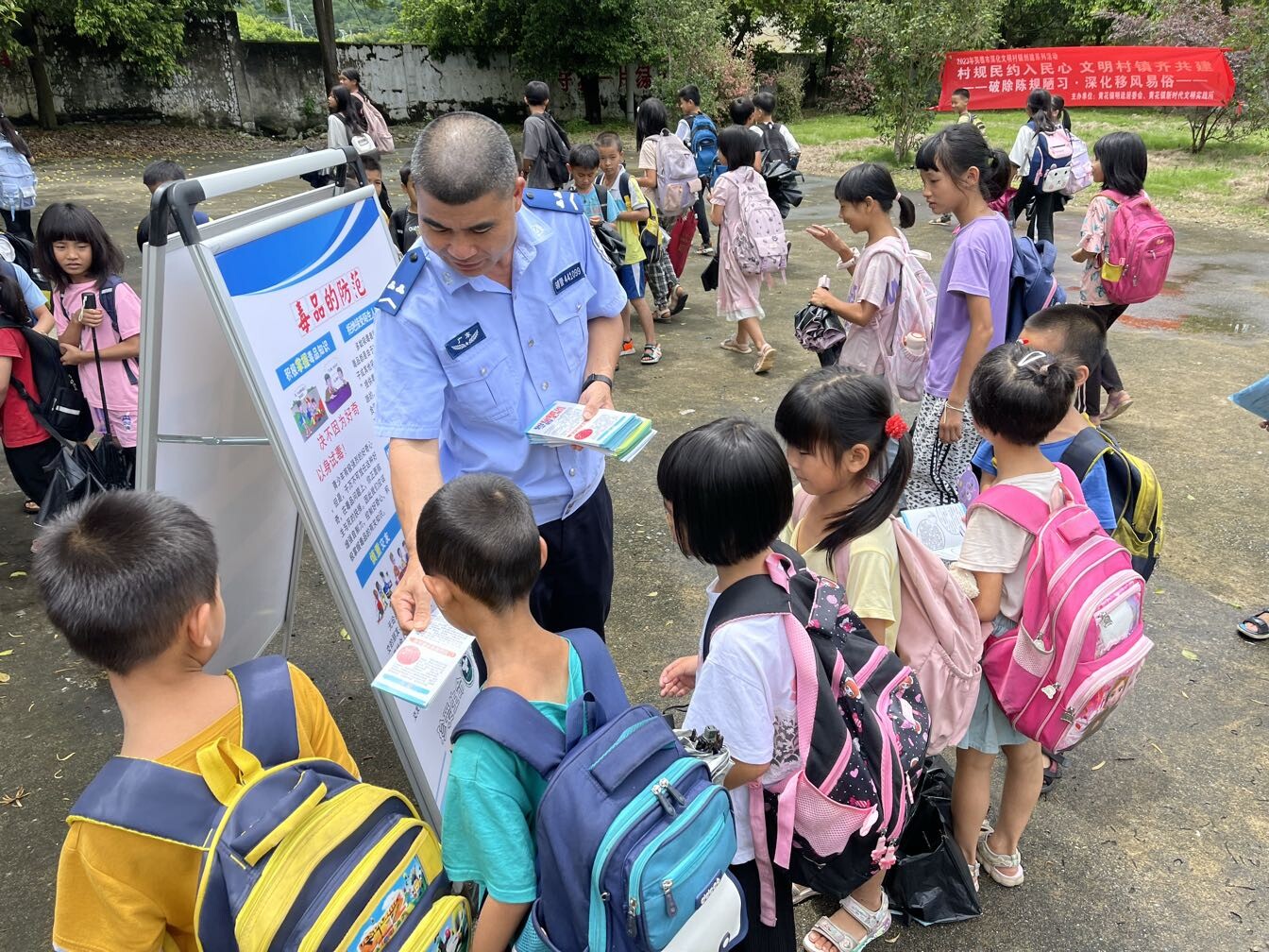 为加强校园禁毒宣传力度,提高青少年的心理预防能力和禁毒意识,在校园内营造人人参与禁毒的良好氛围,2023年6月26日上午,共青团黄花镇委员会联同镇禁毒办、镇派出所一起到黄花镇放板小学以“爱生命,不吸毒”为主题开展禁毒宣传进校园的活动。