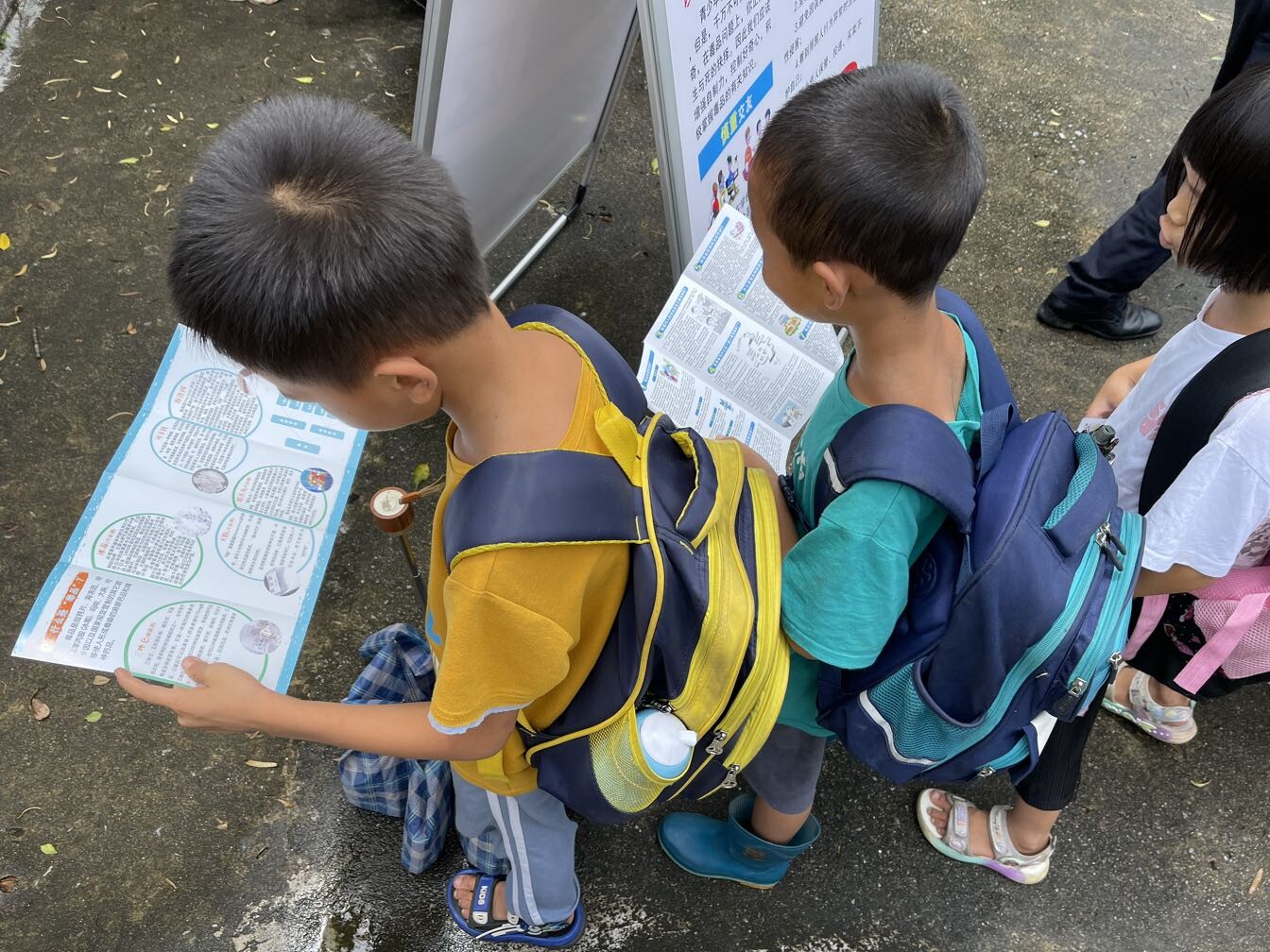 活动中,老师组织同学们在台阶上找好位置排排站齐,禁毒办和派出所的工作人员们向同学们派发禁毒宣传手册,宣讲人站在台下为学生们讲授禁毒知识,为大家讲解宣传手册里的内容。在宣讲人的带领阅读下,小朋友们对“什么是毒品”“毒品的种类”“毒品的危害”等知识加深了。