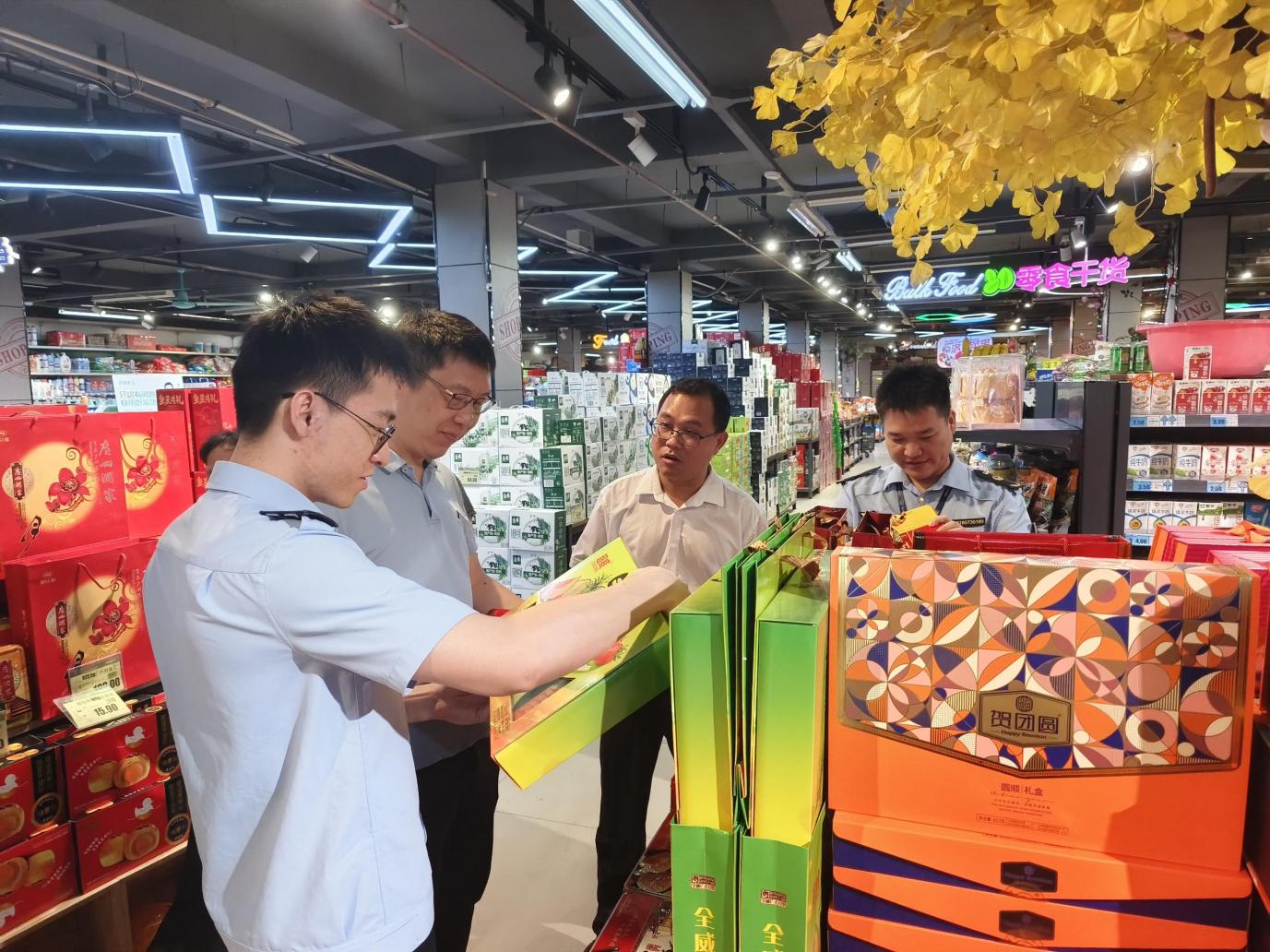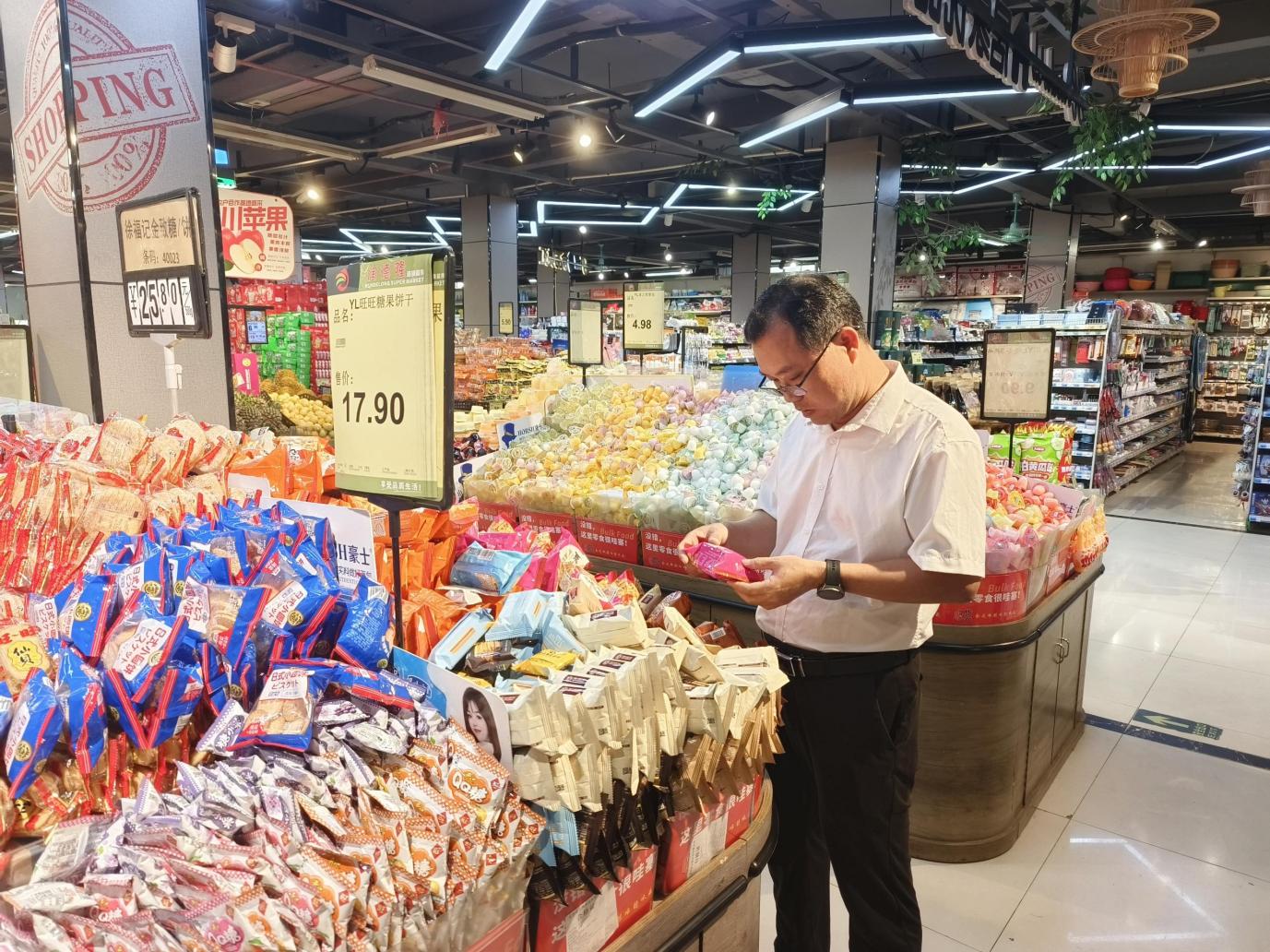 梁永忠一行来到润得隆超市,实地查看了生鲜水产、散装食品等各类食品及其进货验收情况,商品销售是否明码标价、月饼等礼盒是否过度包装等内容,要求超市切实履行食品安全主体责任,加强食品安全管理,落实进货查验制度,加强价格自律管理,做好台风过后和中秋节期间保供稳价工作。