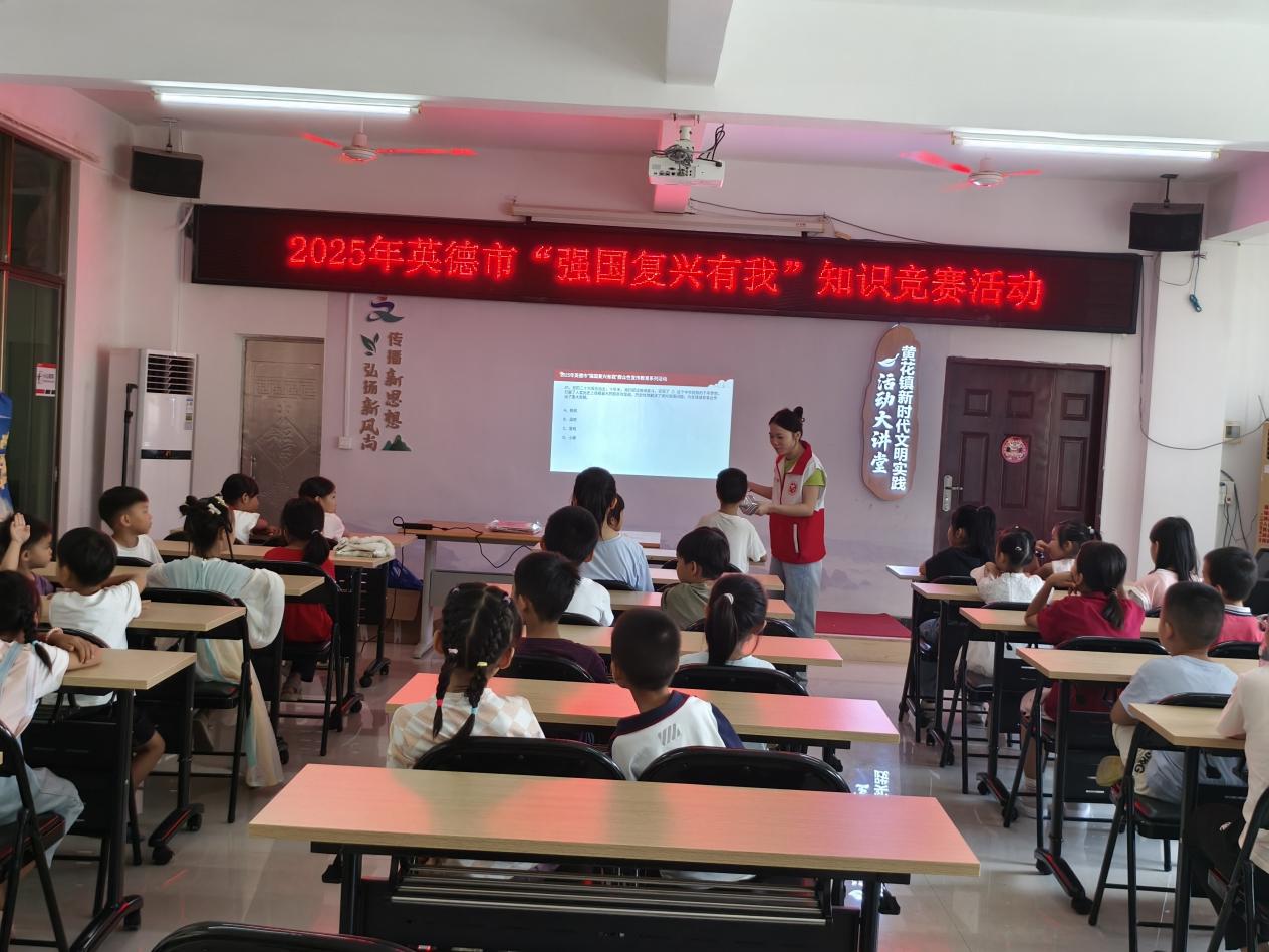 爱国主义教育环节结束后,“强国复兴有我”知识竞赛正式拉开帷幕。竞赛题目紧扣国歌国旗基本知识与党的发展史,题型以判断题、单选题为主,难度贴合不同年龄段孩子的认知水平,既有“国歌是哪一首”“中华人民共和国什么时候成立”等基础题,也有“中国共产党在哪年成立”“党徽有哪两个部分组成”等稍有难度的题目,确保每位孩子都能参与其中。活动现场气氛热烈,每次志愿者刚念完题目,孩子们就纷纷举起小手,有的甚至站起身来,生怕错过答题机会。答对了,现场掌声一片,即使有孩子答错,志愿者们也会耐心讲解,帮助他们理解正确答案,让孩子们在轻松的比拼中巩固红色知识。