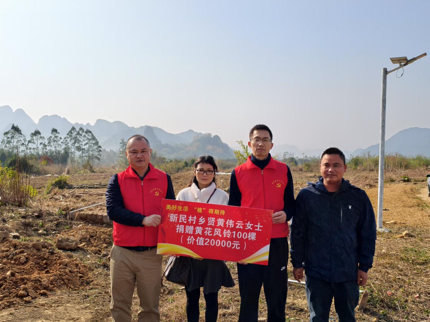 (新民村乡贤黄伟云女士捐赠黄花风铃木树苗100棵)