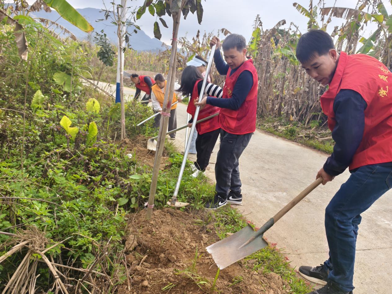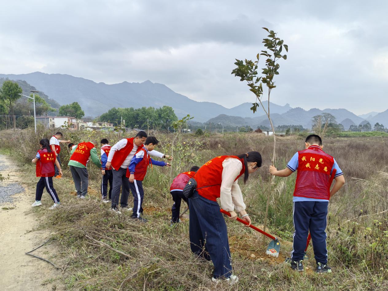 与三山村义务植树活动相呼应,黄花镇城下村、平星村、新民村同步掀起乡村绿化热潮,形成“多点联动、全域推进”的良好局面。其中,英德市第五小学师生前往新民村和三山村,以党建结对共建为纽带,与当地党员群众携手开展植树活动,共同种植细叶紫薇、黄花风铃木等苗木,在劳动中深化党建引领,凝聚共建合力,让绿色理念在师生与村民心中扎根;平星村则联合英德市第六小学集中种植黄花风铃木200棵、铁冬青300棵,以规模化种植提升乡村绿化品质,进一步完善乡村生态景观;城下村积极动员村民代表、党员代表、人大代表等力量,主动参与乡村绿化建设,共种植黄花风铃木约100棵,用实际行动守护家乡绿水青山,推动形成“人人关心绿化、人人参与绿化”的良好氛围。