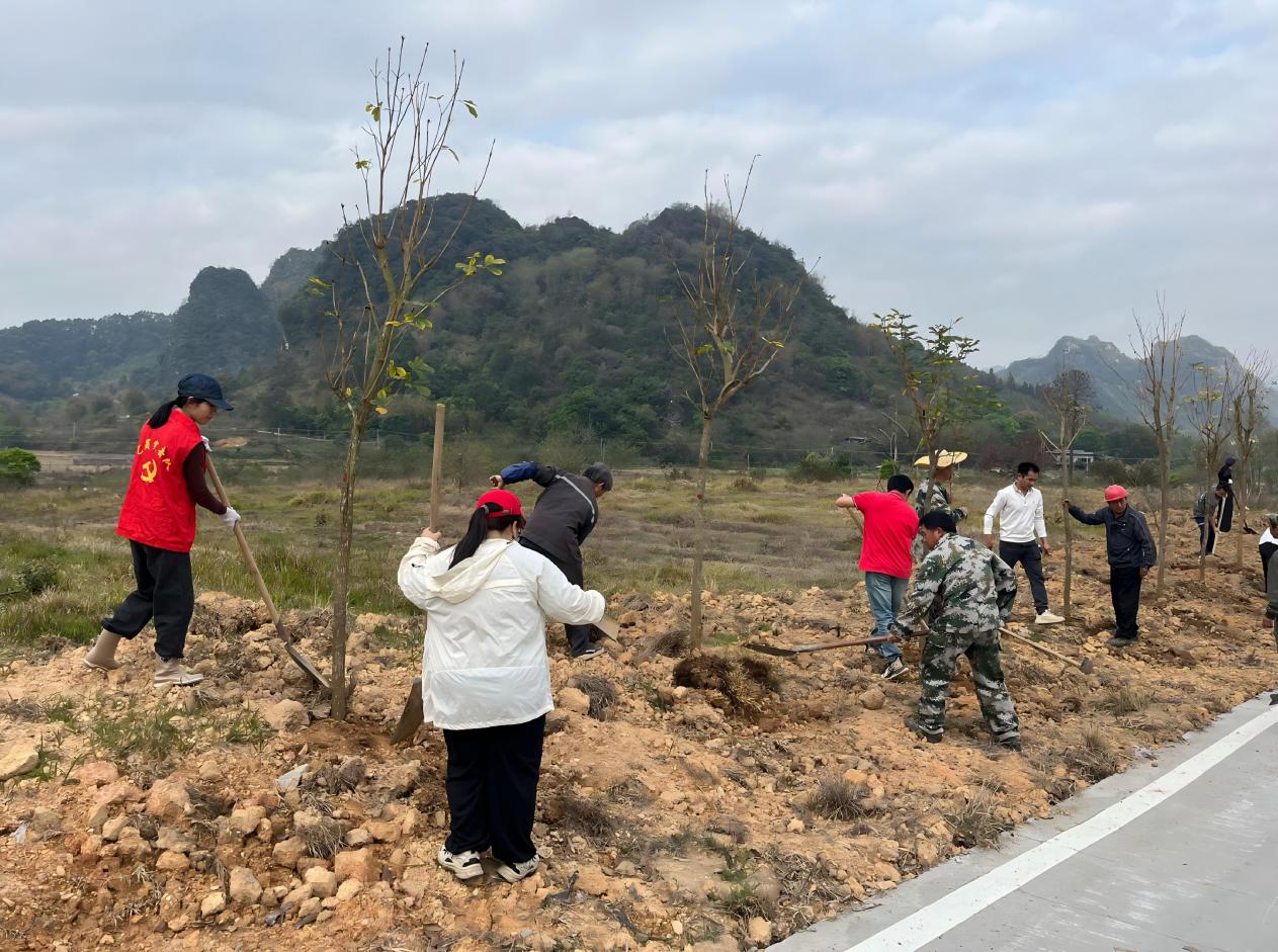 黄花镇三山村植树活动现场气氛热烈、秩序井然。镇干部职工、三山村“两委”干部、“两代表一委员”代表、村民小组长代表、村民代表、企业代表、乡贤代表、及“雁归”大学生代表等各界人士齐聚现场,大家分工协作、默契配合,挥锹铲土、扶苗扶正、填土压实、提水浇灌,每一道工序细致认真、有条不紊,以实际行动践行绿色发展理念。经过一番忙碌,约300株紫花枫铃木迎风挺立,为春日的三山村增添了一抹鲜亮的色彩,也为乡村生态提质注入了新活力。