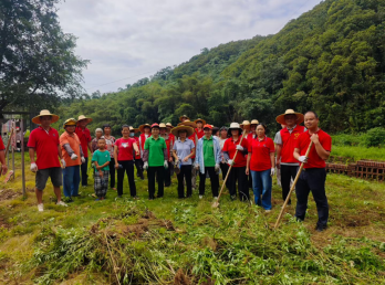 (图为连樟村“两委”干部和群众参加环境整治活动)
