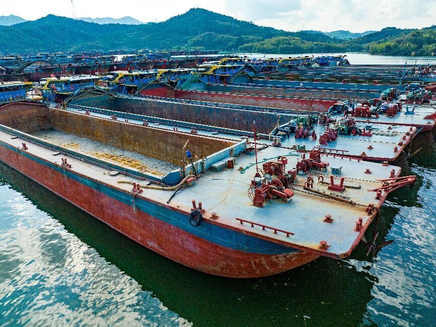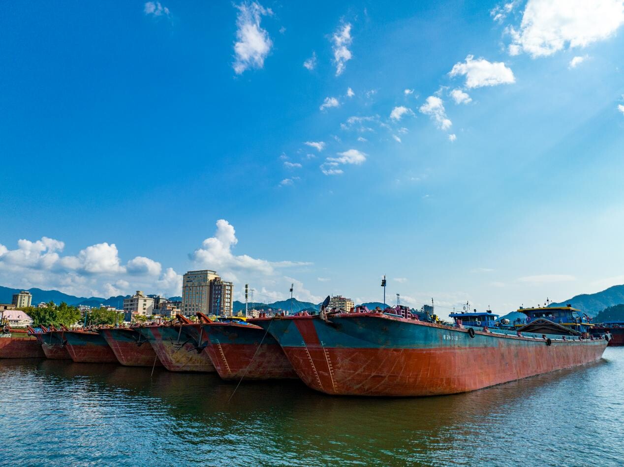 每年春节前夕,英德市黎溪镇水运大军纷纷回乡停泊,与家人们团聚,准备共度新春佳节。一艘艘大铁船停靠在北江河畔上一字排开,宛如接受检阅的舰队,成了黎溪镇一道独特壮观的风景线。