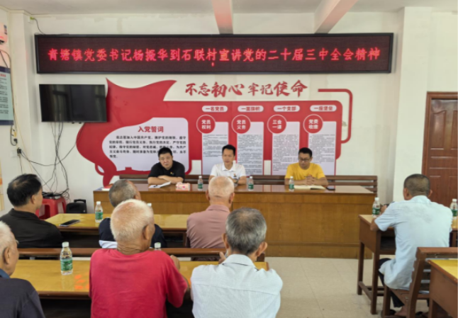 为推动青塘镇学习宣传贯彻党的二十届三中全会精神工作走深走实,9月12日上午,青塘镇党委书记杨振华赴石联村开展党的二十届三中全会精神宣讲。