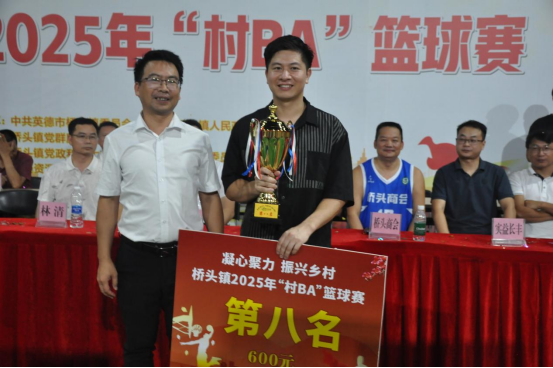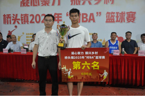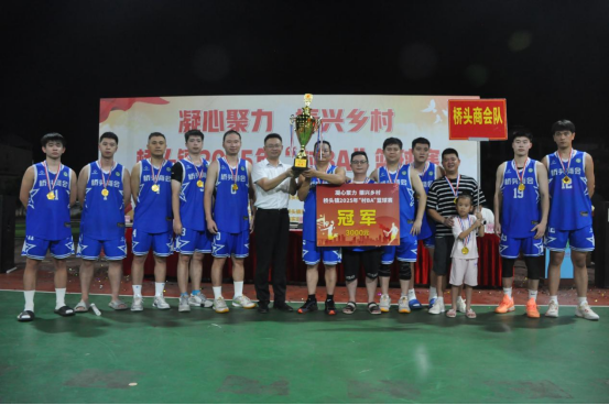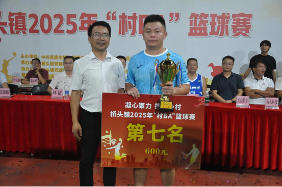 闭幕式上,桥头镇党委书记冯大彰分别为本次比赛冠军桥头商会队、亚军五石村委队颁发奖杯,党委委员余贤照分别为篮球赛季军实益长丰队、第四名潭坑村委队颁奖,副镇长林清为篮球赛第五名亚婆石村委队、第六名英东中学队伍颁奖,副镇长张锦裕为篮球赛第七名中心小学队、第八名桥头镇政府队颁奖,桥头乡贤巫家伟给获得篮球赛道德风尚奖的稀美资源队、南头科技队、新益村委队颁奖。