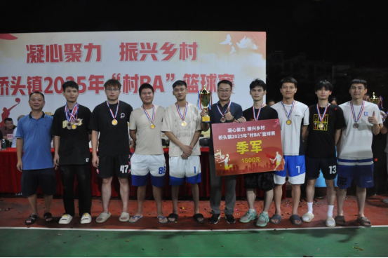 凝心聚力 振兴乡村——桥头镇2025年“村BA”篮球赛经过11天的激烈竞逐,14支参赛队伍完成了54场比赛,于8月9日晚圆满落下帷幕,桥头镇党委书记冯大彰、党委委员余贤照、副镇长林清、副镇长张锦裕,各村(社区)党支部书记、英东中学党总支部书记徐立桥,中心小学党总支部书记林佰安,桥头商会、桥头卫生院、稀美资源(广东)有限公司、实益长丰纺织有限公司、南头科技有限公司代表及14支参赛队伍参加本次闭幕式。