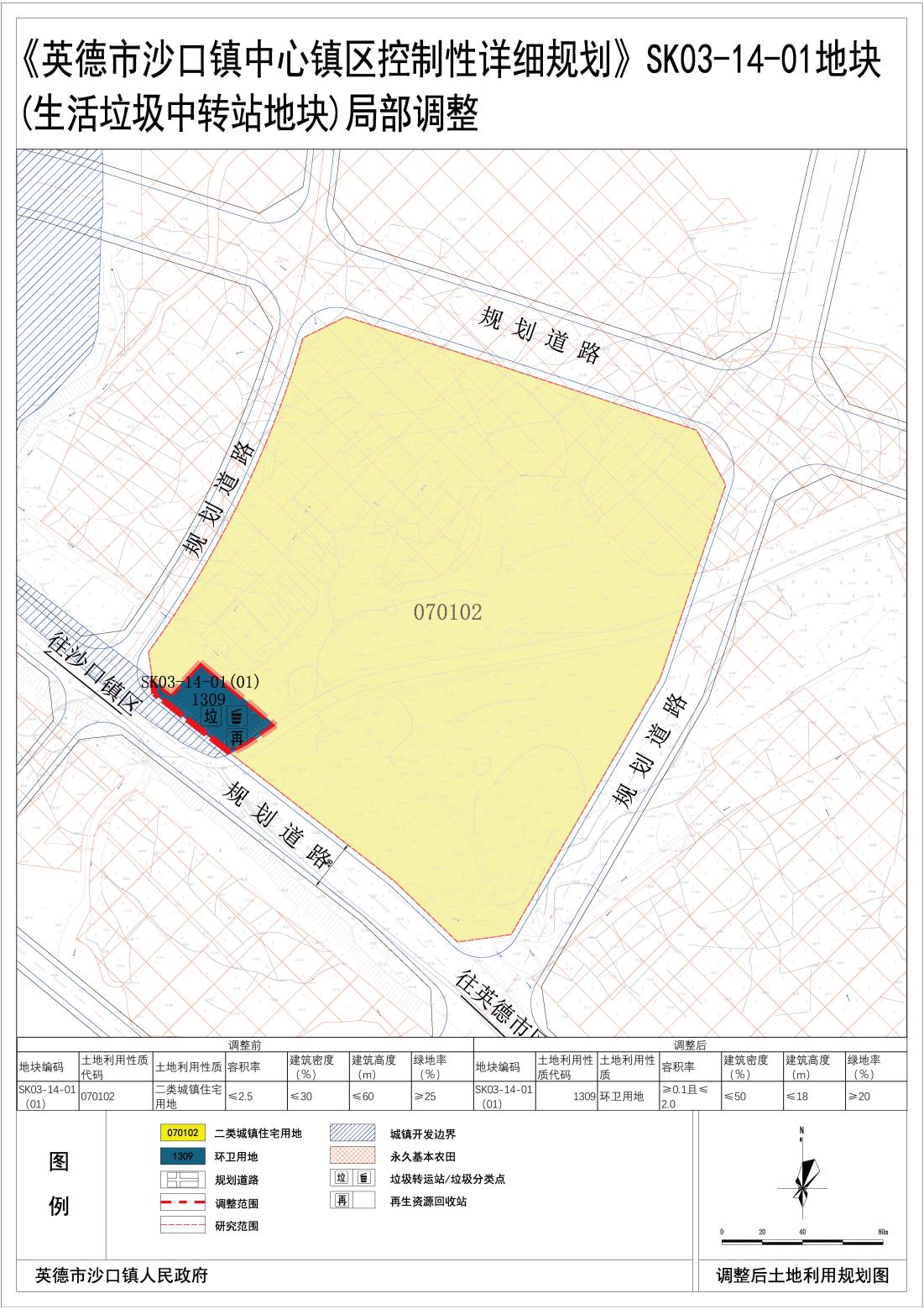 《<英德市沙口镇中心镇区控制性详细规划>SK03-14-01地块(生活垃圾中转站地块)局部调整》