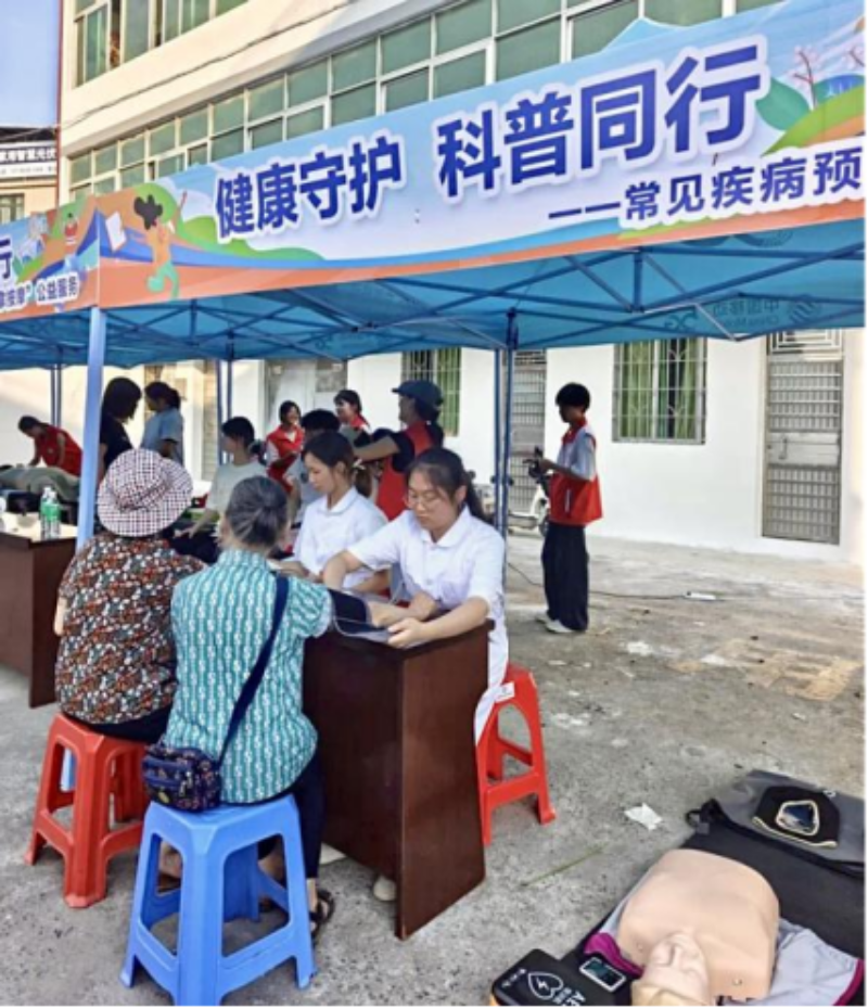 护理学院组建移动医疗站,完成血压测量、脊柱侧弯筛查等健康服务683人次,发放《乡村健康手册》500余册。特别设置的中医理疗区提供推拿、刮痧等服务,累计服务老年群体217人次。应急救护培训通过“理论+实操”模式,指导153名居民掌握心肺复苏等急救技能,筑牢基层健康防线,让健康理念深入人心。
