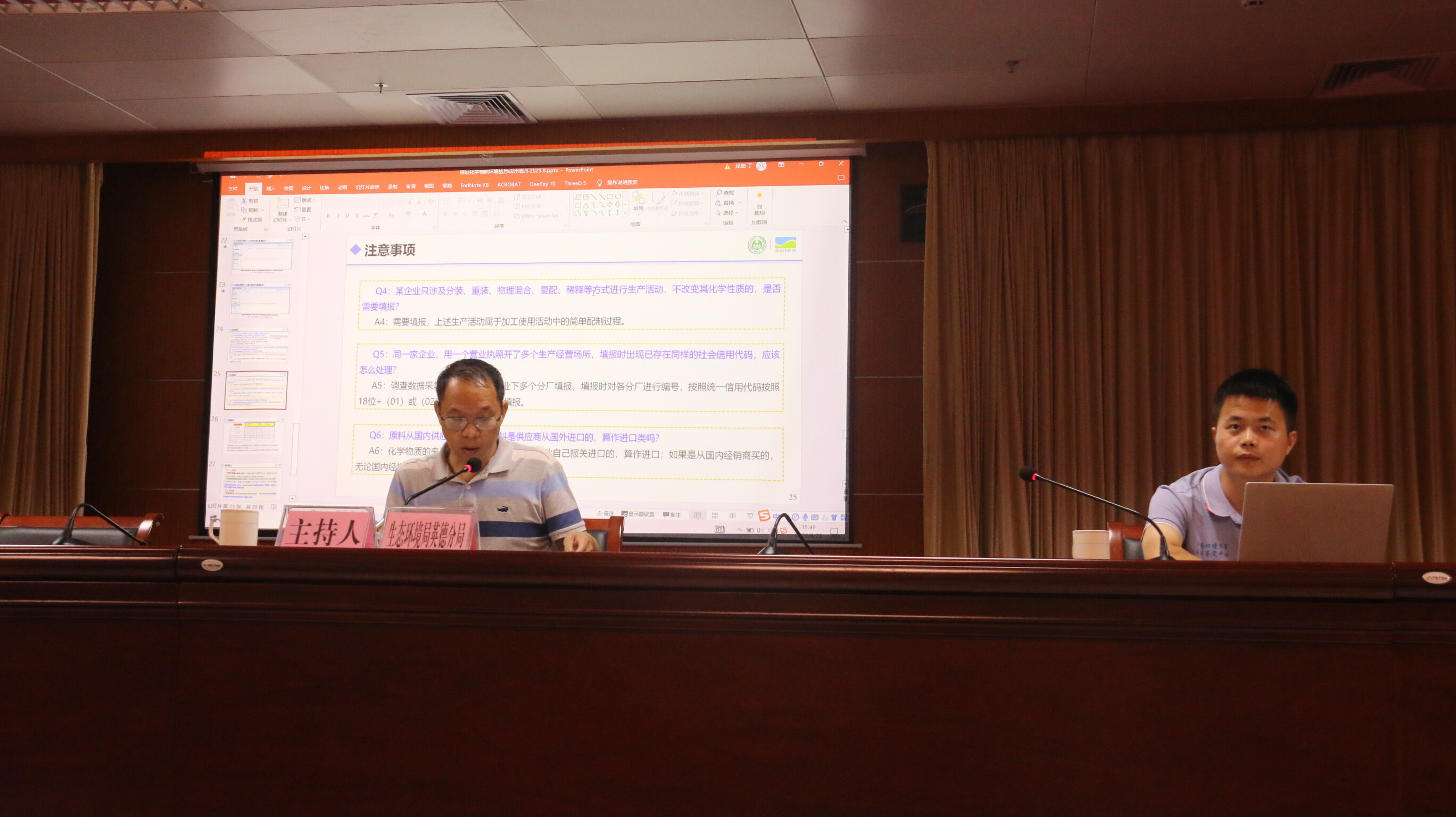 会上,丁泽聪博士结合视频和案例,详细地介绍了化学物质环境信息统计调查的账号申请注册及企业基础信息表、详细环境信息表、重点管控信息表填报等内容。同时,为强化培训效果,会议设置提问答疑环节,各参会企业代表针对物料、生产工艺、污染物排放等实际情况纷纷提问,丁泽聪博士逐一解答,高效解决企业的疑惑。