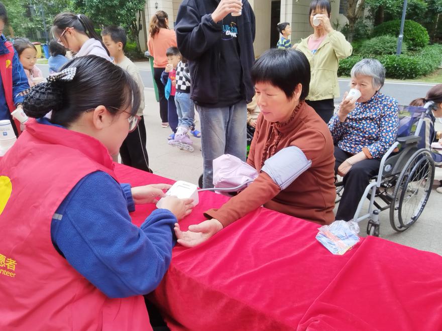 便民市集花样多,烟火气里见温情。英德市退役军人达飞志愿服务队作为入选全国1000支“退役军人守护家园志愿服务队”,积极开展“荣耀家园·暖心邻里”志愿服务。活动现场,豆浆车前排起长队,退役女兵和军嫂志愿者将一杯杯热气腾腾的豆浆递到晨练归来的老人手中。“张阿姨,您血压118/78,保持得真好!”志愿者手中的血压计化作健康守护符。“嚓嚓”的磨刀声里,王师傅让邻居们的菜刀重现锋芒,引得围观居民笑称“这手艺磨出的刀,比新打的还锃亮”。便民集市的志愿者不仅给十余辆儿童单车打了气,还给车链上了油,居民纷纷为单车充气服务点赞。