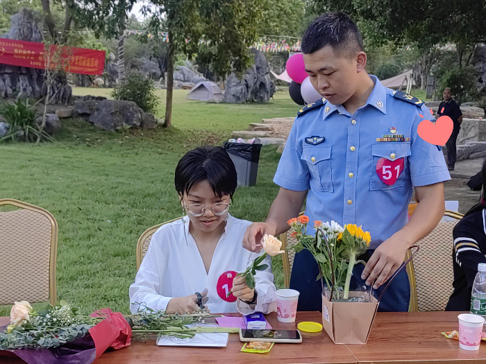 随后,在主持人热情洋溢的带动下,单身青年们全身心投入到“DIY插花”“心动环节”“交友送花”、露营烧烤、户外K歌等众多有趣的环节中,他们在活动中放下顾虑,在相互配合中逐渐熟悉,有趣的灵魂在欢声笑语中彼此碰撞,不断将活动推向一个又一个高潮,现场洋溢着热烈轻松的青春气息。