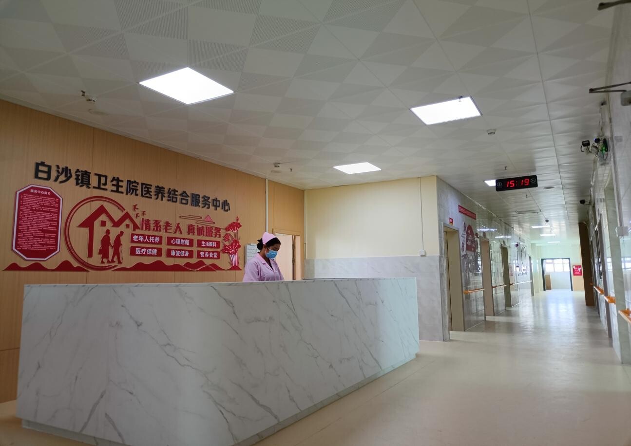 当天,各与会人员先行到白沙镇卫生院医养结合服务中心现场参观,了解老年人日常生活照料以及居住环境适老化改造、养老文化宣传、老年人娱乐、康养运动等配套设施。