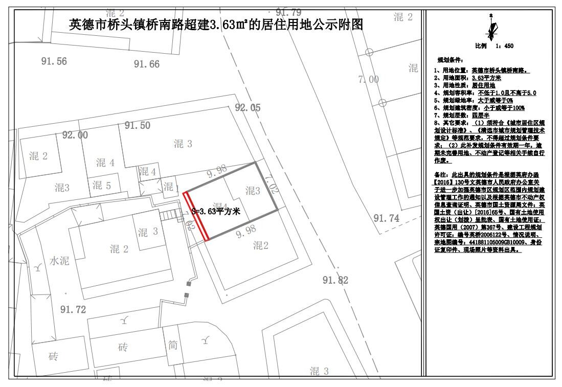 关于补发英德市桥头镇桥南路超建3.63㎡的规划条件批前网上公示
