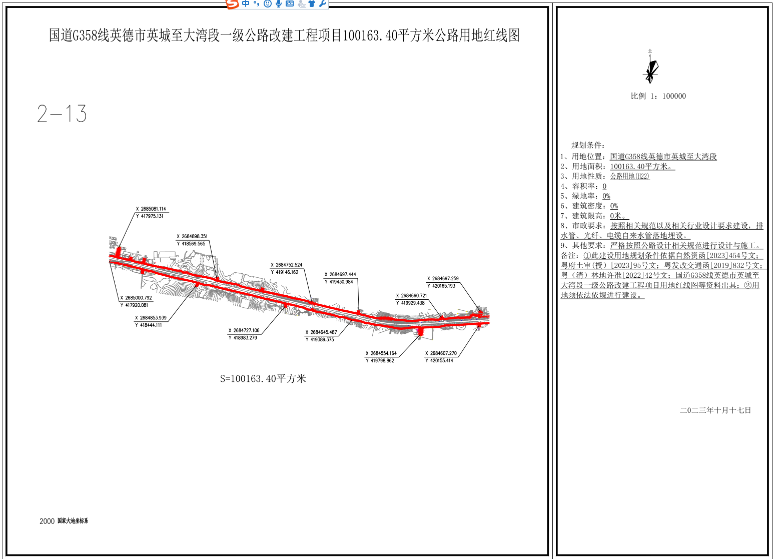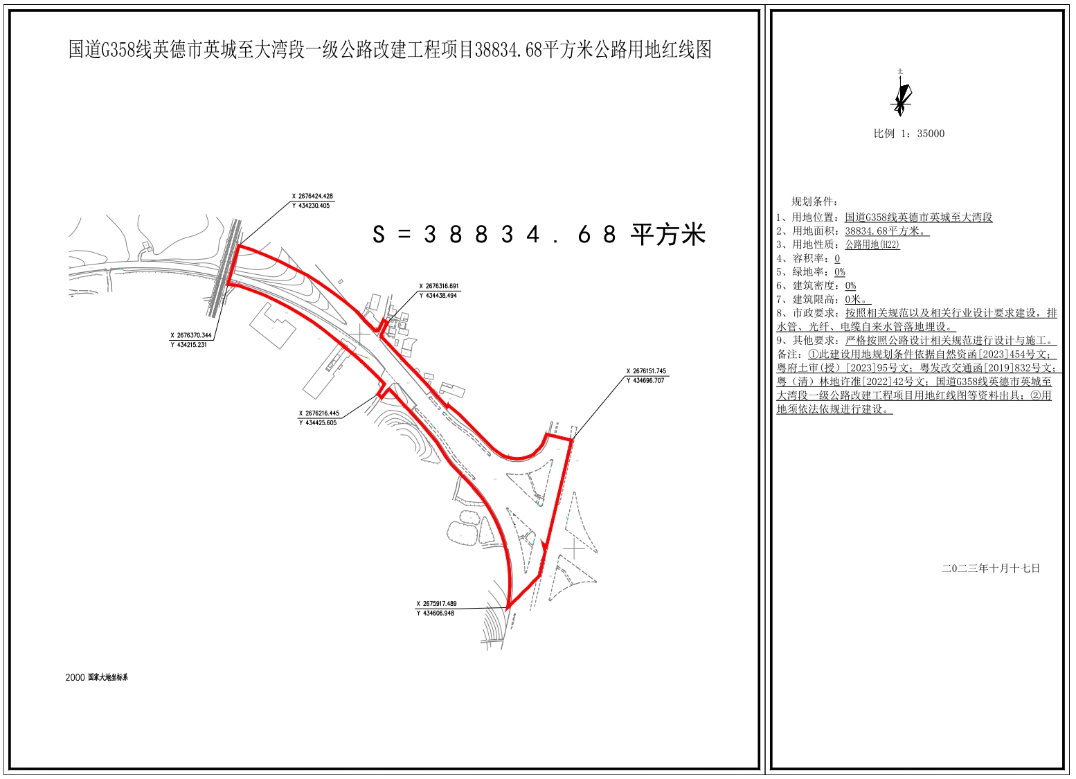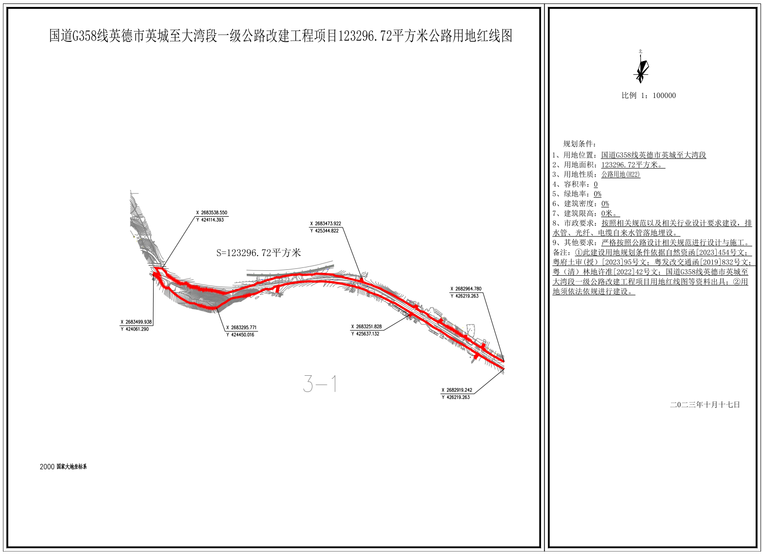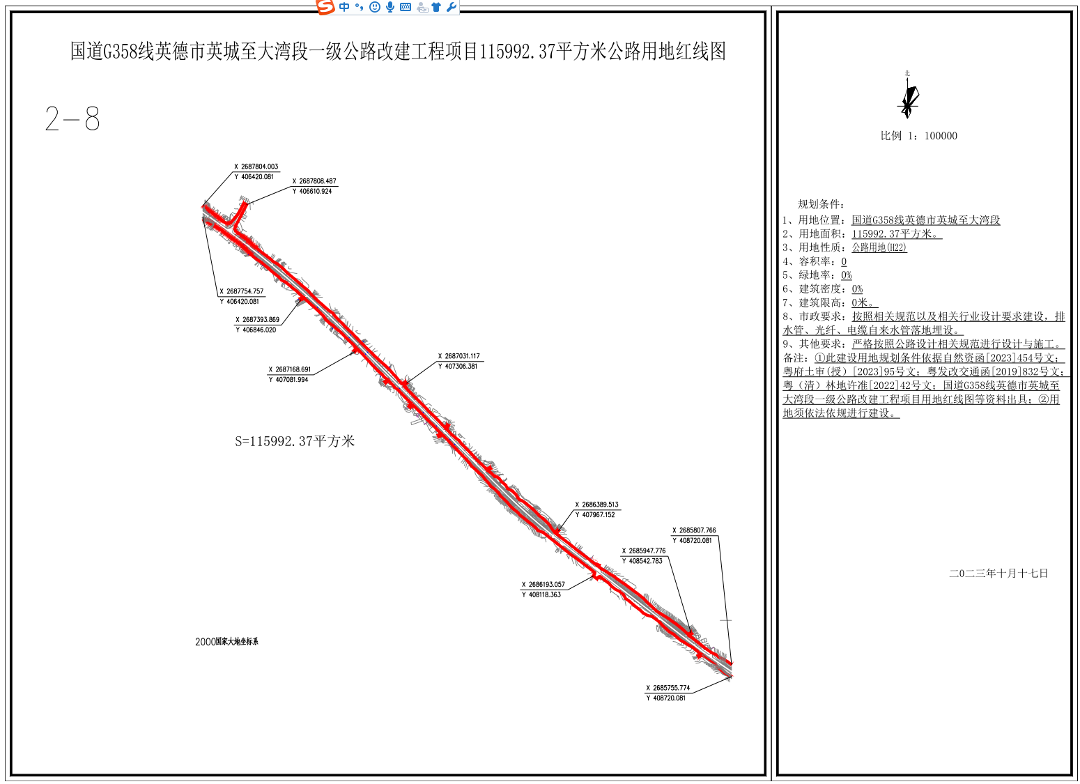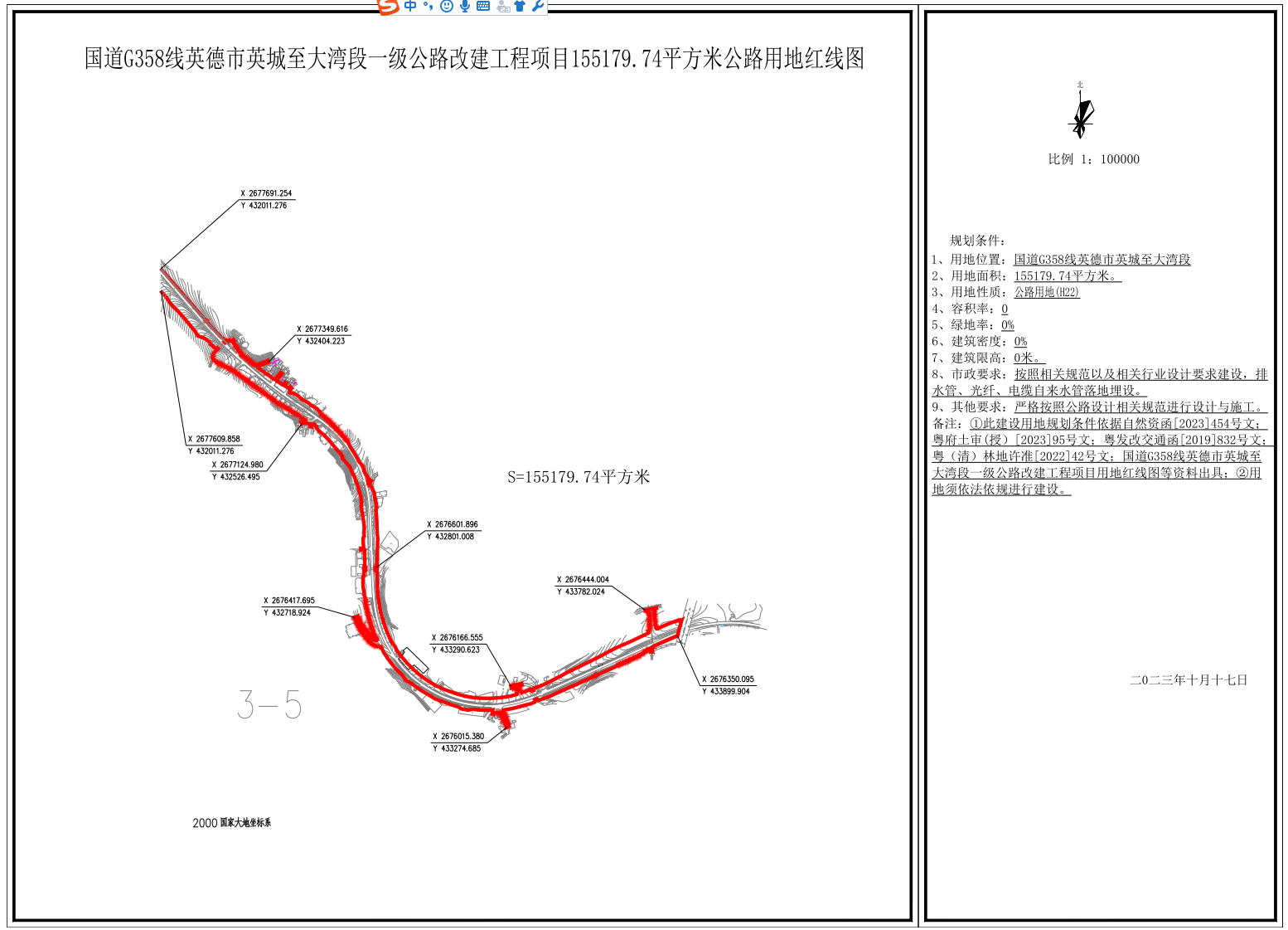 关于出具国道G358线英德市英城街道至大湾段2317739平方米公路用地规划条件批前公示