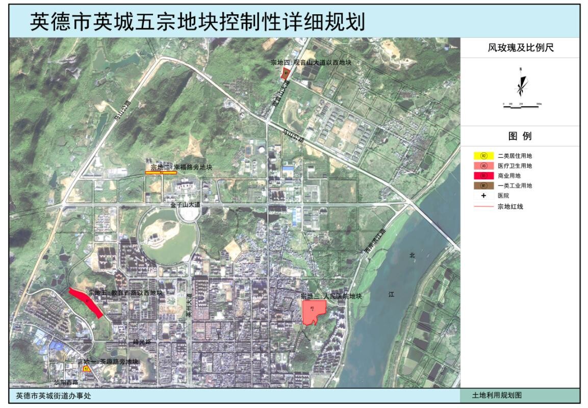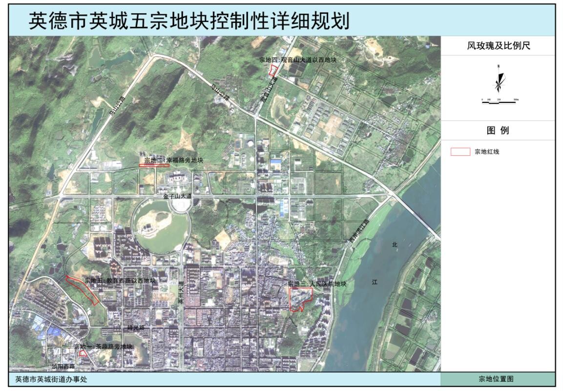 根据《中华人民共和国城乡规划法》、《广东省城乡规划条例》的规定,现将《英德市英城5宗地块控制性详细规划(茶趣路旁地块、幸福路旁地块、人民医院地块、教育西路以西地块、观音山大道以西地块)》公布如下: