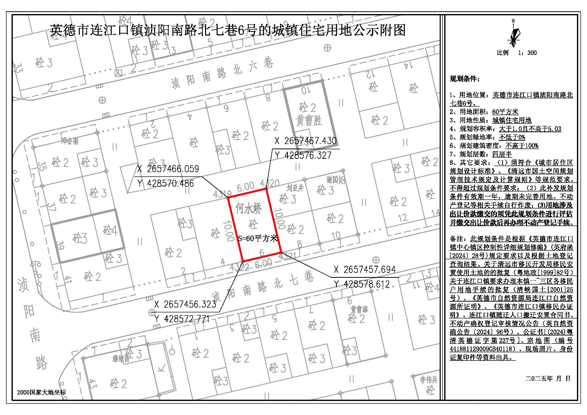 关于出具英德市连江口镇浈阳南路北七巷6号60平方米城镇住宅用地规划条件的