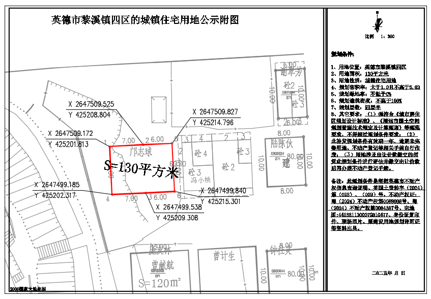 关于出具英德市黎溪镇四区130平方米城镇住宅用地规划条件的批前网上公示