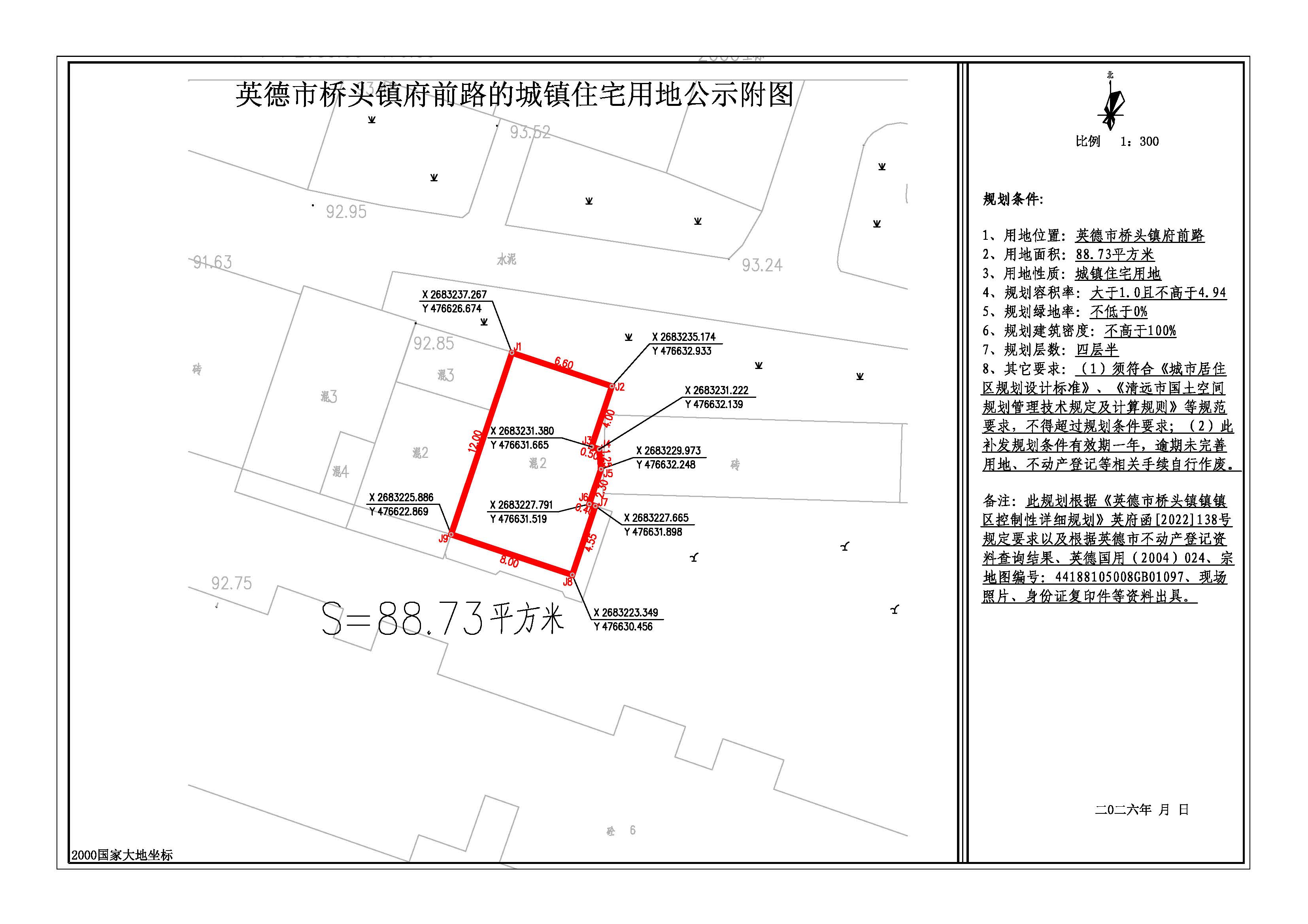 关于出具英德市桥头镇府前路88.73平方米城镇住宅用地规划条件的批前网上公示