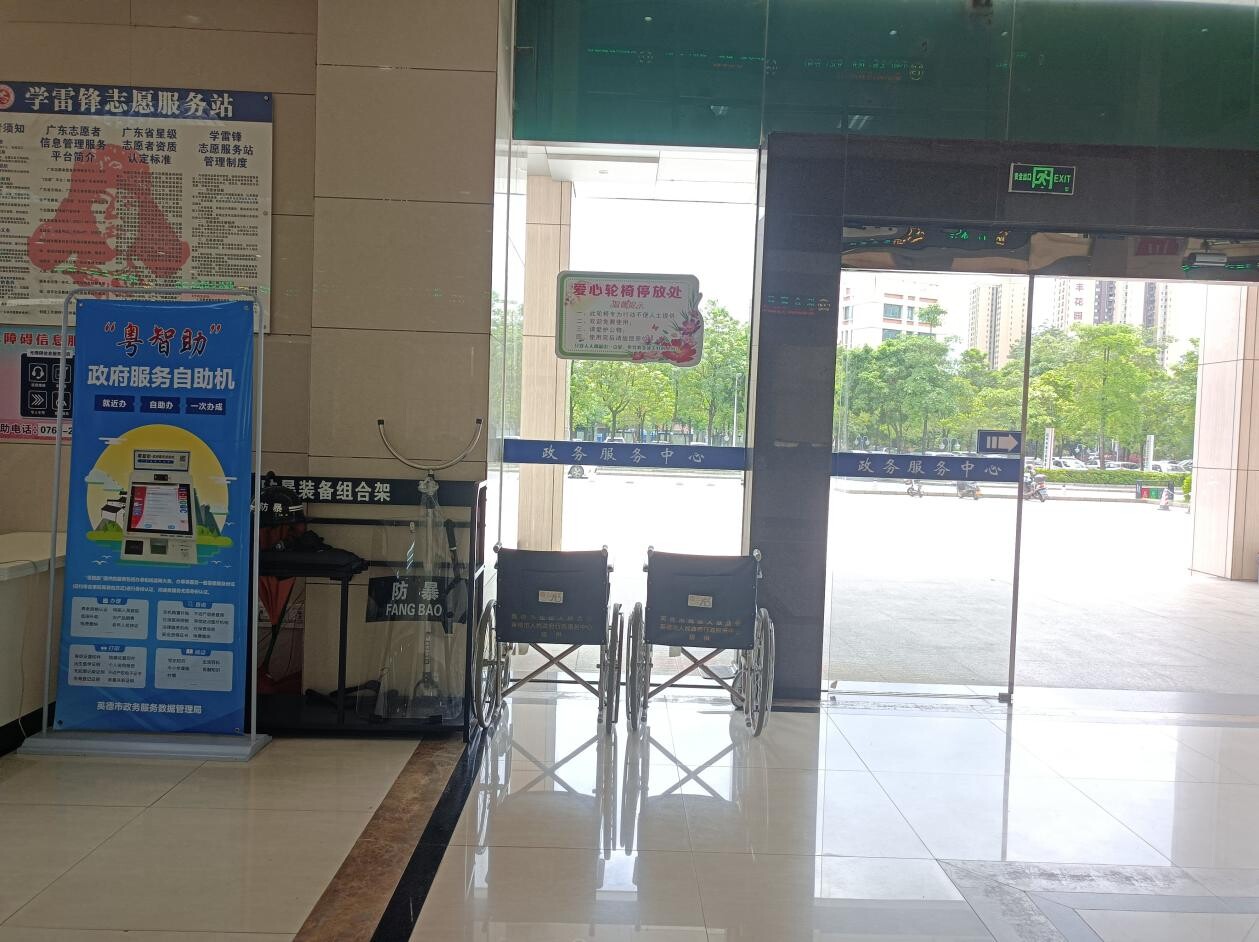 近年来,为进一步提升政务服务大厅无障碍服务能力,解决老年人、残疾人等特殊人群办事困难,助力我市文明城市建设,让政务服务更好地惠及有障碍群体,英德市政务服务数据管理局从“小设施大爱心、小窗口大服务”入手,积极推进政务大厅适老化、适残化改造工作。在学雷锋志愿服务站配备手写板、老花镜、轮椅、药箱等用品,同时在政务服务大厅周边和内部设有无障碍停车位、无障碍通道、无障碍电梯、无障碍洗手间、低位服务台、无障碍服务专区等无障碍设施和开展优先办理绿色通道、帮办代办等服务,全力破除老年人残疾人办事壁垒,有力保障好特殊群体的线下服务渠道、现场取号权益,真正实现办事零障碍、更便捷。