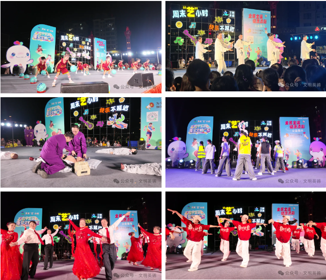 喜迎十五运,健康齐欢聚!11月8日晚,月桂湖广场灯火璀璨、人声鼎沸,由英德市文明办携手市人民医院开展的周末“艺”小时——“全民全运,健康添彩”公益集市圆满落幕。千余名市民齐聚一堂,在动感演出与贴心服务中解锁养生新方式,让十五运“全民参与、共享健康”的理念深深扎根人心。