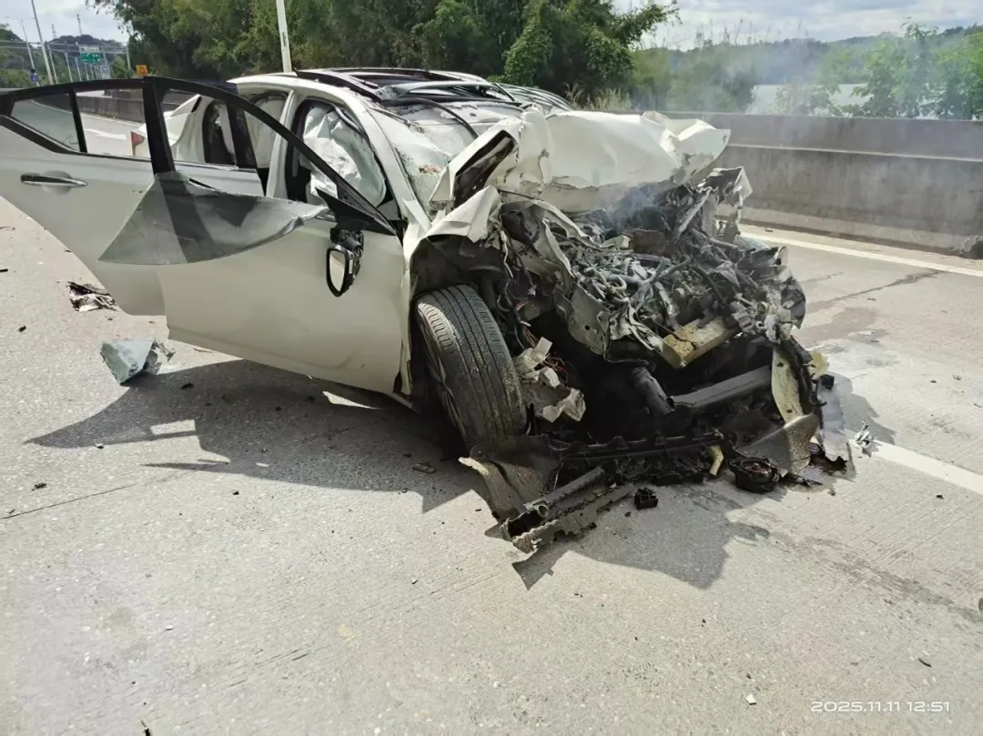 灭火破窗,180秒生死救援。“师傅坚持住,我马上救你出来!”2025年11月11日中午,初冬的银英公路车流如织。清远英德市烟草物流节点送货司机陈赞波在完成送货任务后,驾车沿G240银英路返程。途中,他突遇惊险一幕:一辆轿车与前方大货车发生严重追尾,车头已严重变形如揉碎的纸团,引擎盖下火苗窜出并迅速蔓延,浓烟滚滚,将事故车辆笼罩其中。