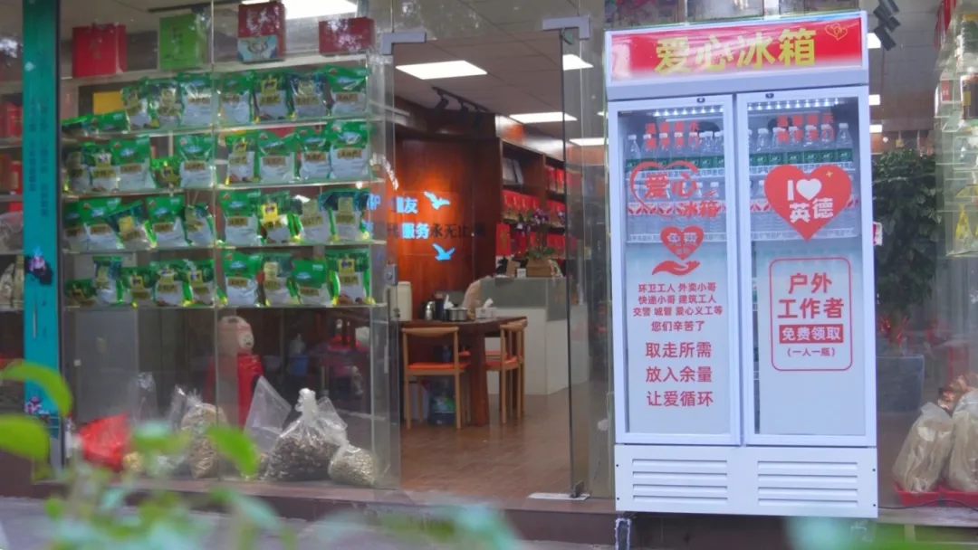 一台小小的冰箱,装下的是清凉饮品,传递的是城市温度。为英德这位暖心商家点赞,也期待这份善意能吸引更多人接力,让文明之花在英德处处绽放!