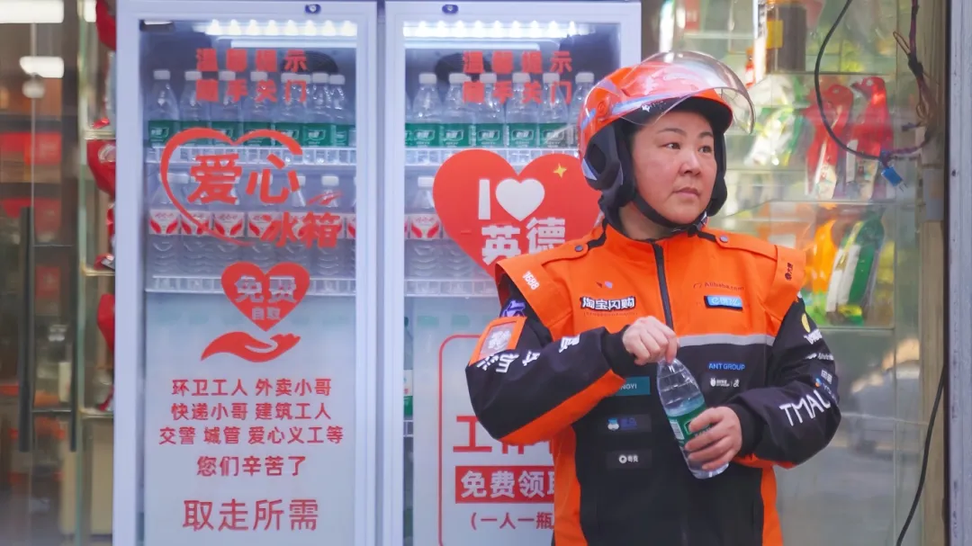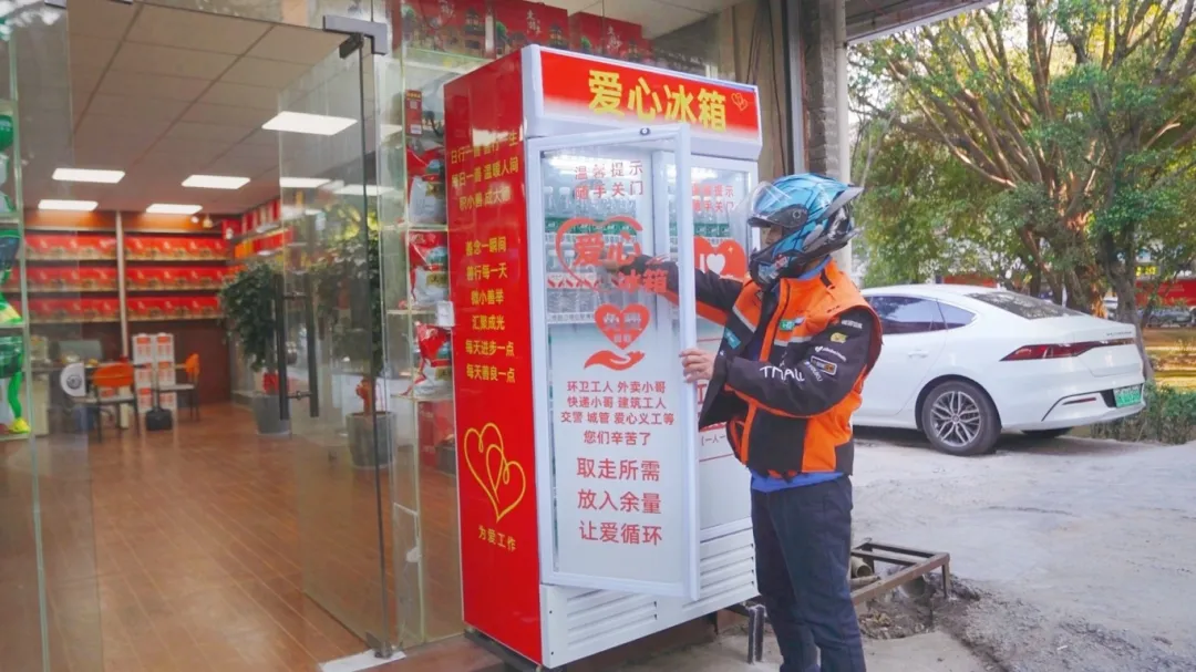 爱心冰箱刚“上岗”,就收获了不少户外劳动者的点赞。外卖员周向荣直言:“骑手跑单时时间赶,常常顾不上带水,商家提供这个便利点,能让我们及时补充水分,太贴心了!”另一位外卖员敖凌玲也笑着说:“跑累了、渴了,就来这儿歇会儿、拿瓶水,特别方便,真心感谢商家!”