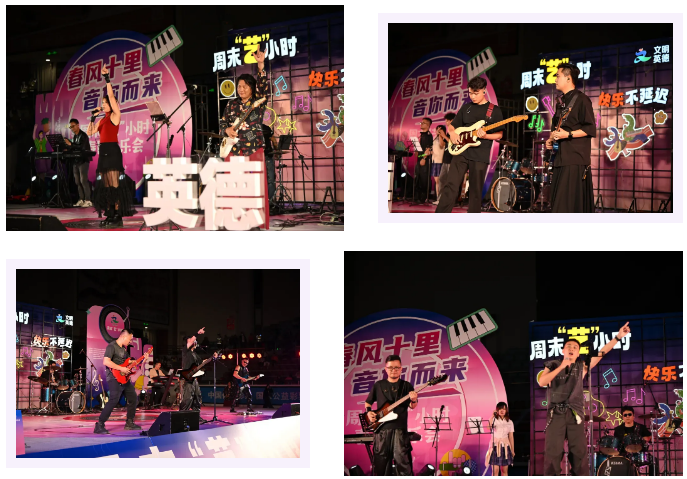 三支本土摇滚乐队轮番登场。除了重磅特邀嘉宾,三支扎根英德的本土乐队也轮番登场,带来90分钟的摇滚连唱。南门口乐队以野生、热烈、赤诚的声音唱响城市烟火,他们演唱的原创歌曲《红茶乡》说的正是英德红茶的故事;逃跑乌龙乐队从天台到江边、街角,随性不随心;红茶馆乐队女主唱具港风韵味,吉他手兼男主唱嗓音神似伍佰,风格鲜明、感染力十足。三支乐队,三种风格,每一段都让观众举起手机闪光灯,现场汇成一片星海。
