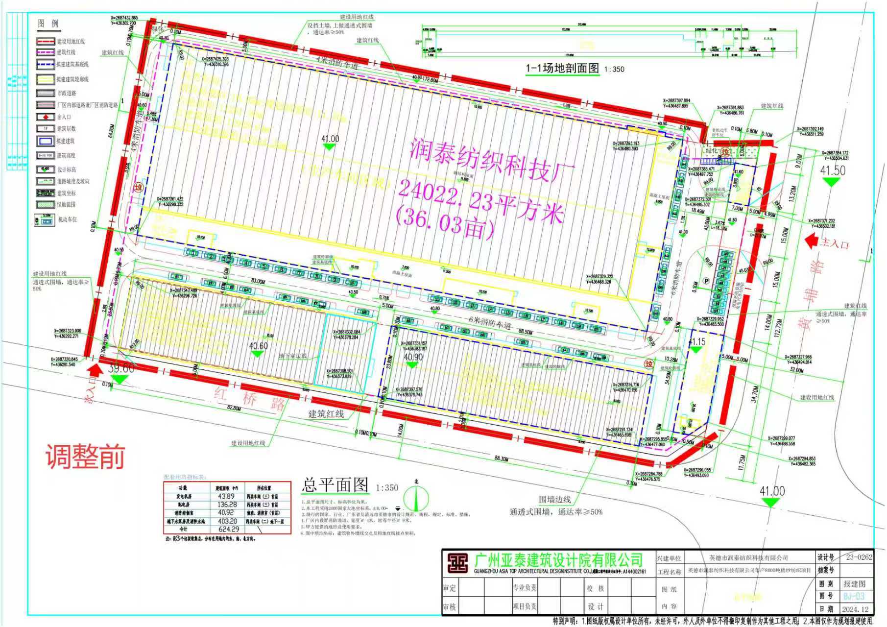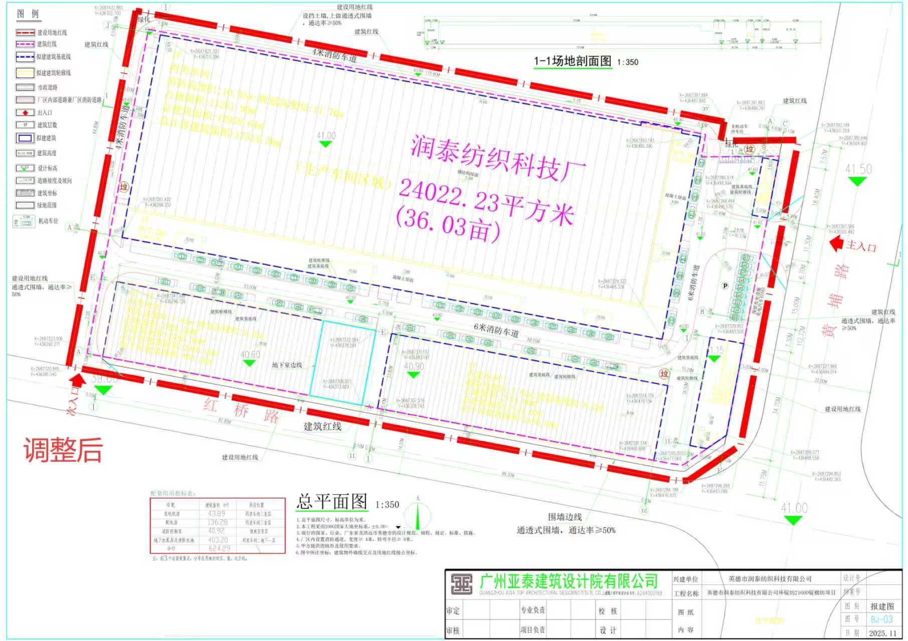 (一)英德市润泰纺织科技有限公司设计方案总平面调整内容:
