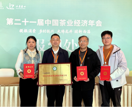 在开幕式上,由中国茶叶流通协会公布了2025茶业重点(原百强)县域及茶业高质量发展县域名单,英德市榜上有名,这也是英德连续16年获此殊荣! 近年来,英德以清远市打造英德红茶百亿农业产业为导向,以农业科技创新和区域品牌价值赋能为引领,推动茶产业区域公用品牌和个性品牌实现多端双向赋能,以品牌叠加效应为“百亿产业”提质增效,为茶产业高质量发展注入新动能。截至2025年11月,全市共有茶园面积18.65万亩,实现综合产值99.13亿元,预计到今年年底英德红茶综合产值将突破100亿元。