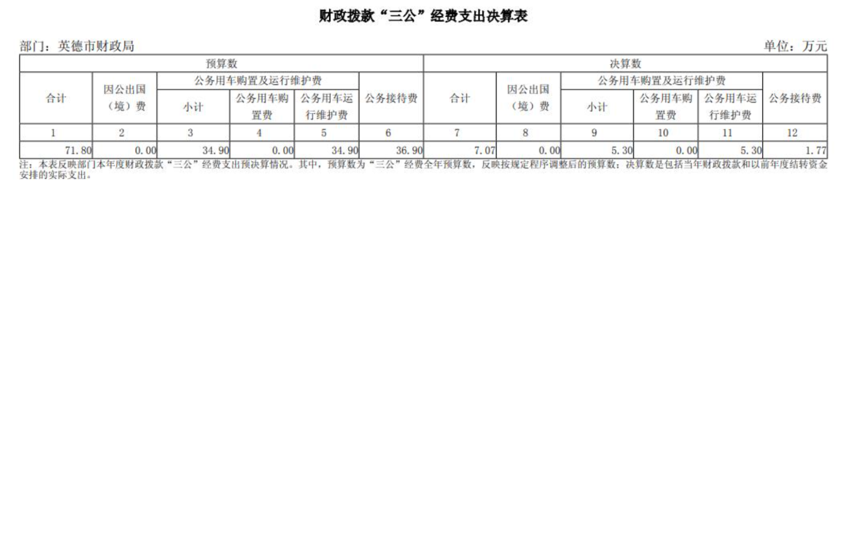 英德市财政局2024年“三公”经费支出决算表