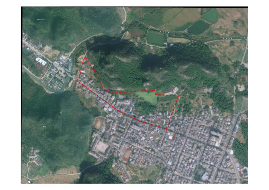 以《现行控规》市政道路与地块边界围合区域形成本次《局部调整》规划范围。规划范围位于英德市黄花镇区中北部,北至马山,南邻明迳大道,东至现状道路,西至黄花公园,规划范围总