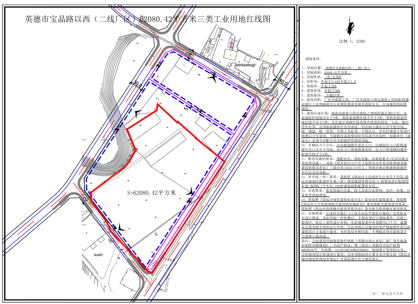 关于英德市宝晶路以西(二厂线区)62080.42平方米三类工业用地规划条件的批前网上公示