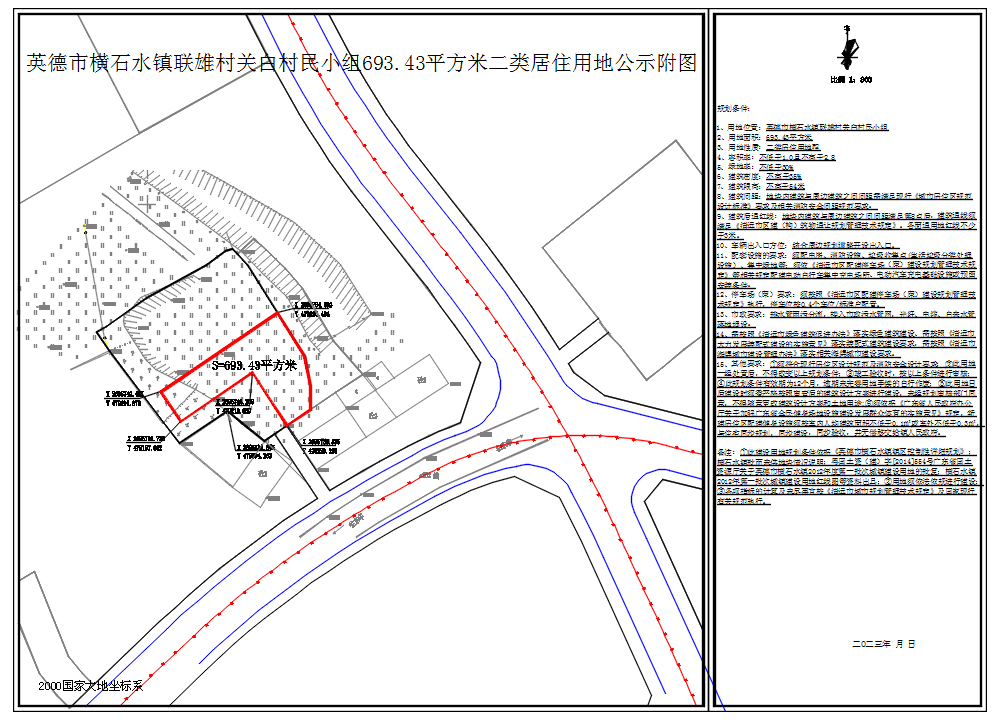 关于出具英德市横石水镇联雄村关白村民小组693.43平方二类居住用地规划条件批前网上