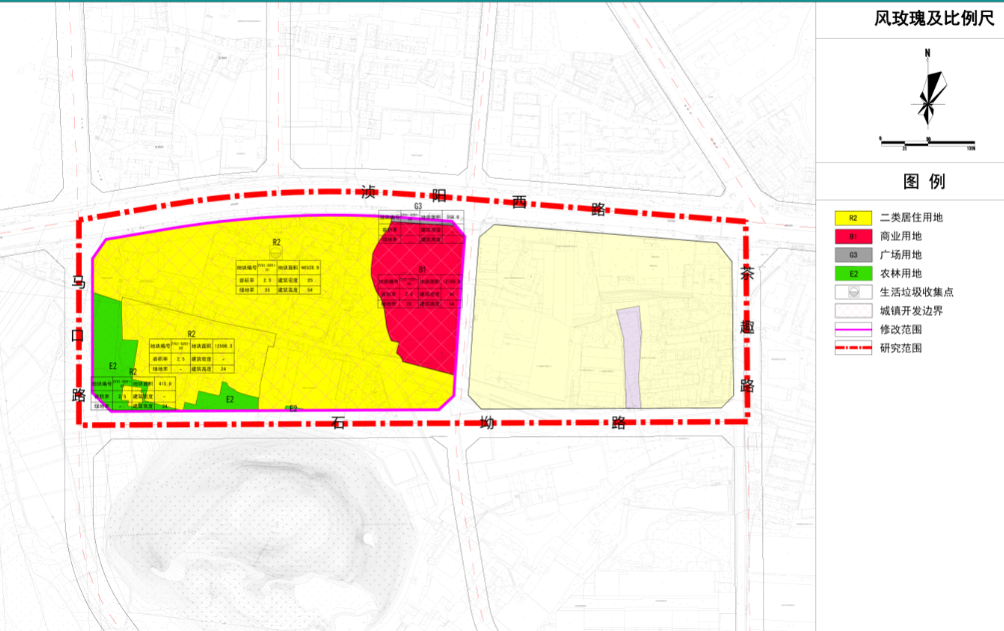 修改后:修改地块总用面积为7.90公顷,城市建设用地7.27公顷,包括二类居住用地5.95公顷,商业用地1.28公顷,广场用地0.04公顷。非建设用地0.63公顷。