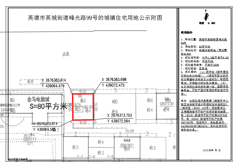 关于出具英德市英城街道峰光路99号80米城镇住宅用地规划条件的批前网上公示