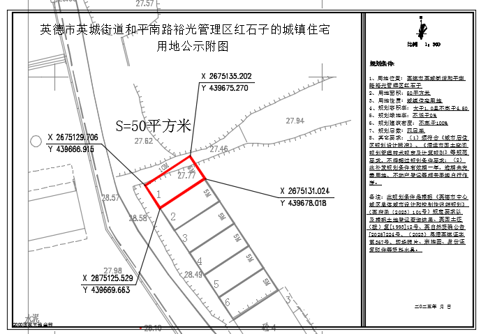关于出具英德市英城街道和平南路裕光管理区红石子50平方米城镇住宅用地规划条件的批前网上公示