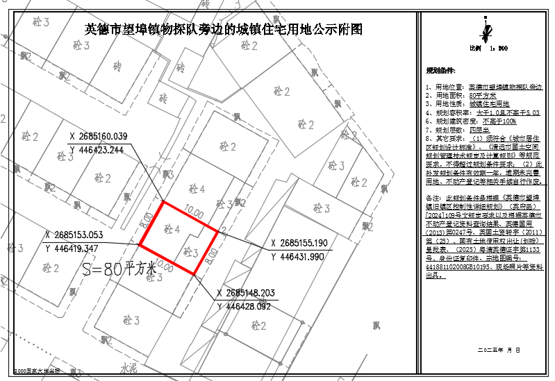 关于出具英德市望埠镇物探队旁边80平方米城镇住宅用地规划条件的批前网上公示
