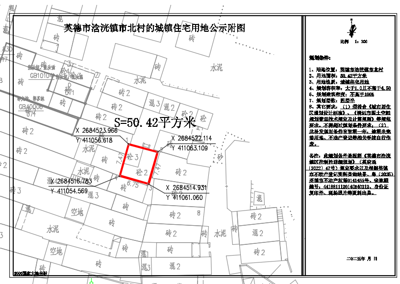 关于出具英德市浛洸镇市北村50.42平方米城镇住宅用地规划条件的批前网上公示