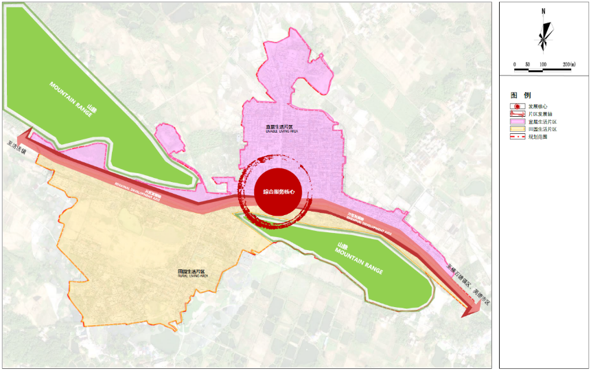 依托良好的生态环境与便利的交通区位,打造以居住为主要功能,集商业、文化、休闲等功能于一体,设施完善、景观环境良好的宜居片区。