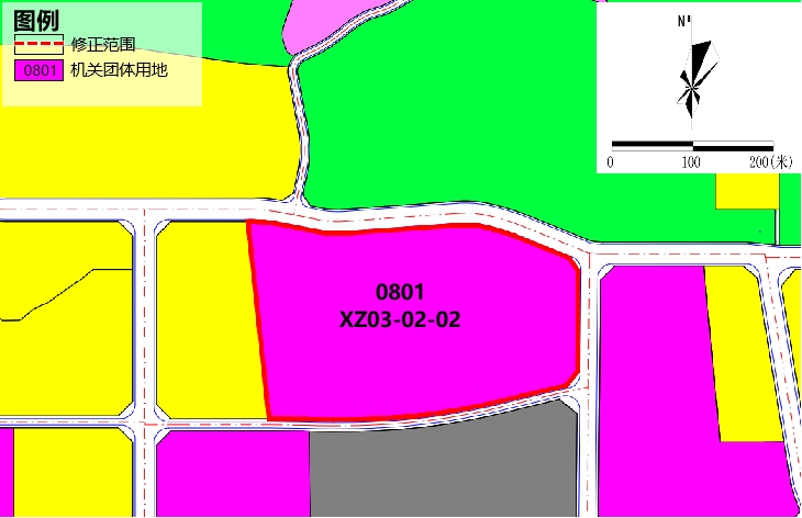 制性详细规划技术修正》。将XZ03-02-02机关团体用地(0801)面积88801㎡修正为教育用地(0804)面积6654㎡,剩余机关团体用地(0801)面积为82147㎡,将XZ03-02-02机关团体用地(0801)修正为XZ03-02-03机关团体用地(0801)、XZ03-02-04教育用地(0804)。其教育用地指标按证落实为容积率≤1.2、建筑密度≤66%、绿地率≥30%、建筑高度54m。