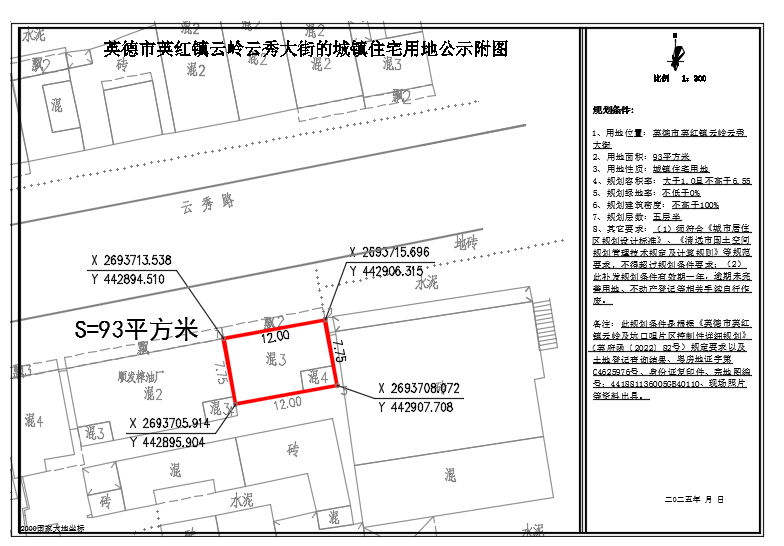 关于出具英德市英红镇云岭云秀大街93平方米城镇住宅用地规划条件的批前网上公示