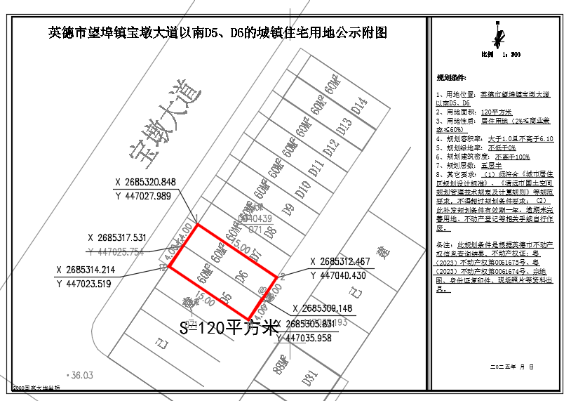 关于出具英德市望埠镇宝墩大道以南D5、D6地块120平方米城镇住宅用地规划条件的批前网上公示