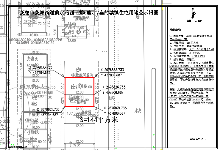 关于出具英德市英城街道仙水路西一排6座、7座144平方米城镇住宅用地规划条件的批前网上公示