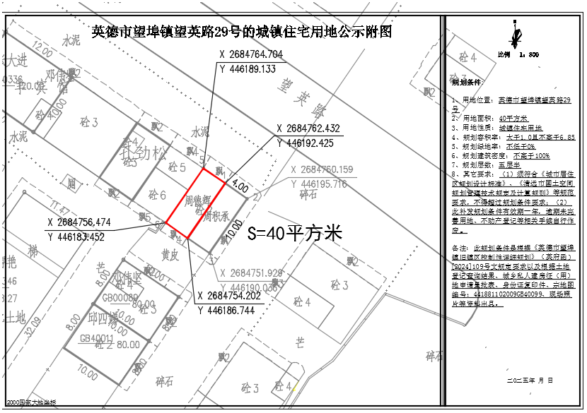 关于出具英德市望埠镇望英路29号40平方米城镇住宅用地规划条件的批前网上公示