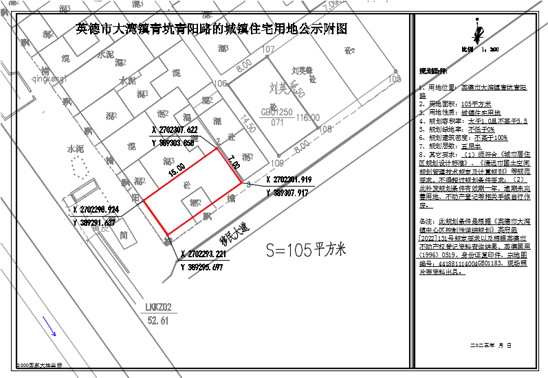 关于出具英德市大湾镇青坑青阳路105平方米城镇住宅用地规划条件的批前网上公示