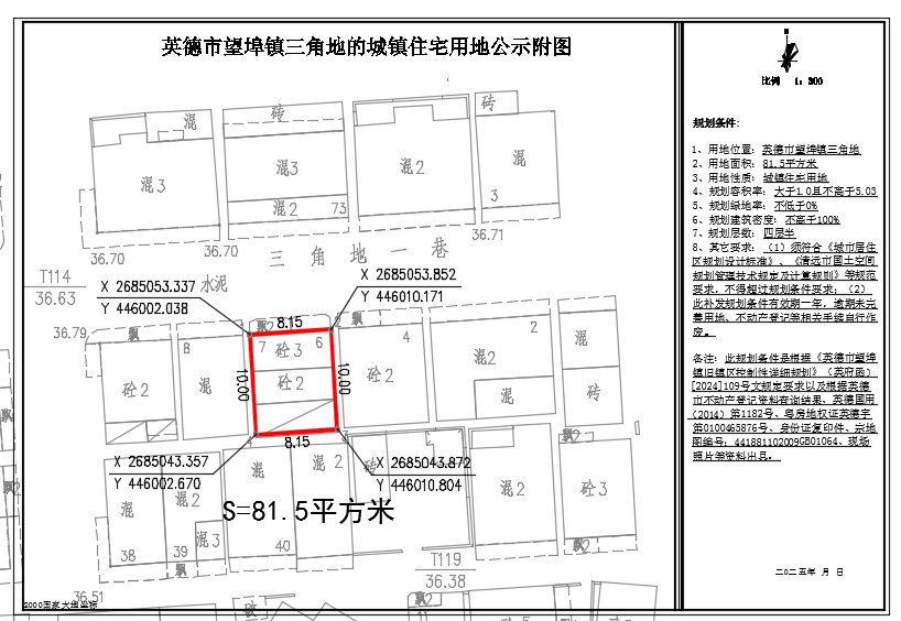 关于出具英德市望埠镇三角地81.5平方米城镇住宅用地规划条件的批前网上公示