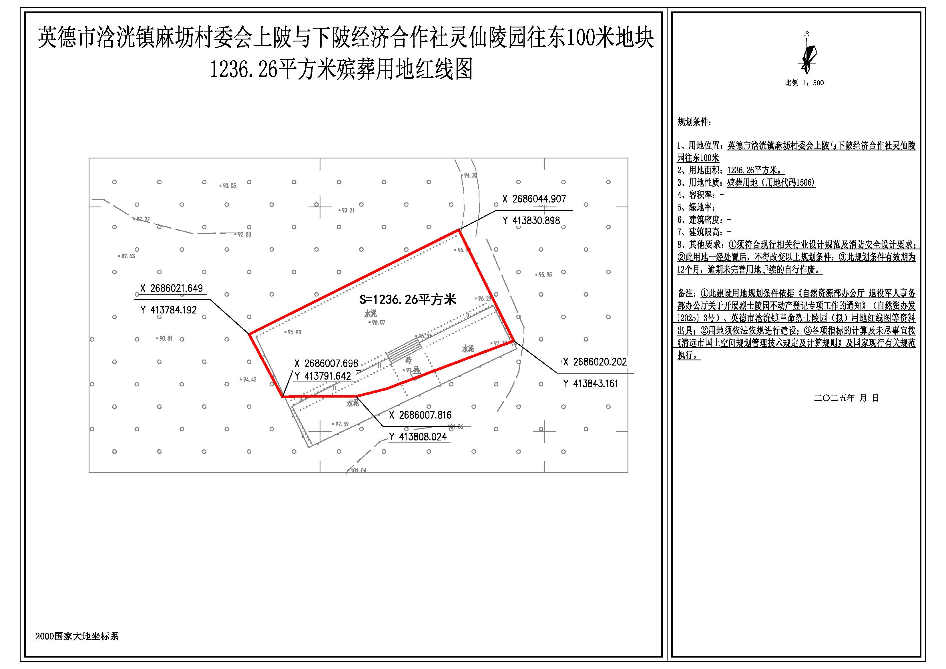 我局收到英德市浛洸镇人民政府关于出具一宗用地规划条件的申请。经核查,该用地位于英德市浛洸镇麻坜村委会上陂与下陂经济合作社灵仙陵园往东100米,面积1236.26平方米,为殡葬用地。根据《中华人民共和国城乡规划法》、《广东省城乡规划条例》等法律、法规的有关规定,我局决定对上述地块的规划条件进行批前网上公示,征求相关利益关系人的意见。